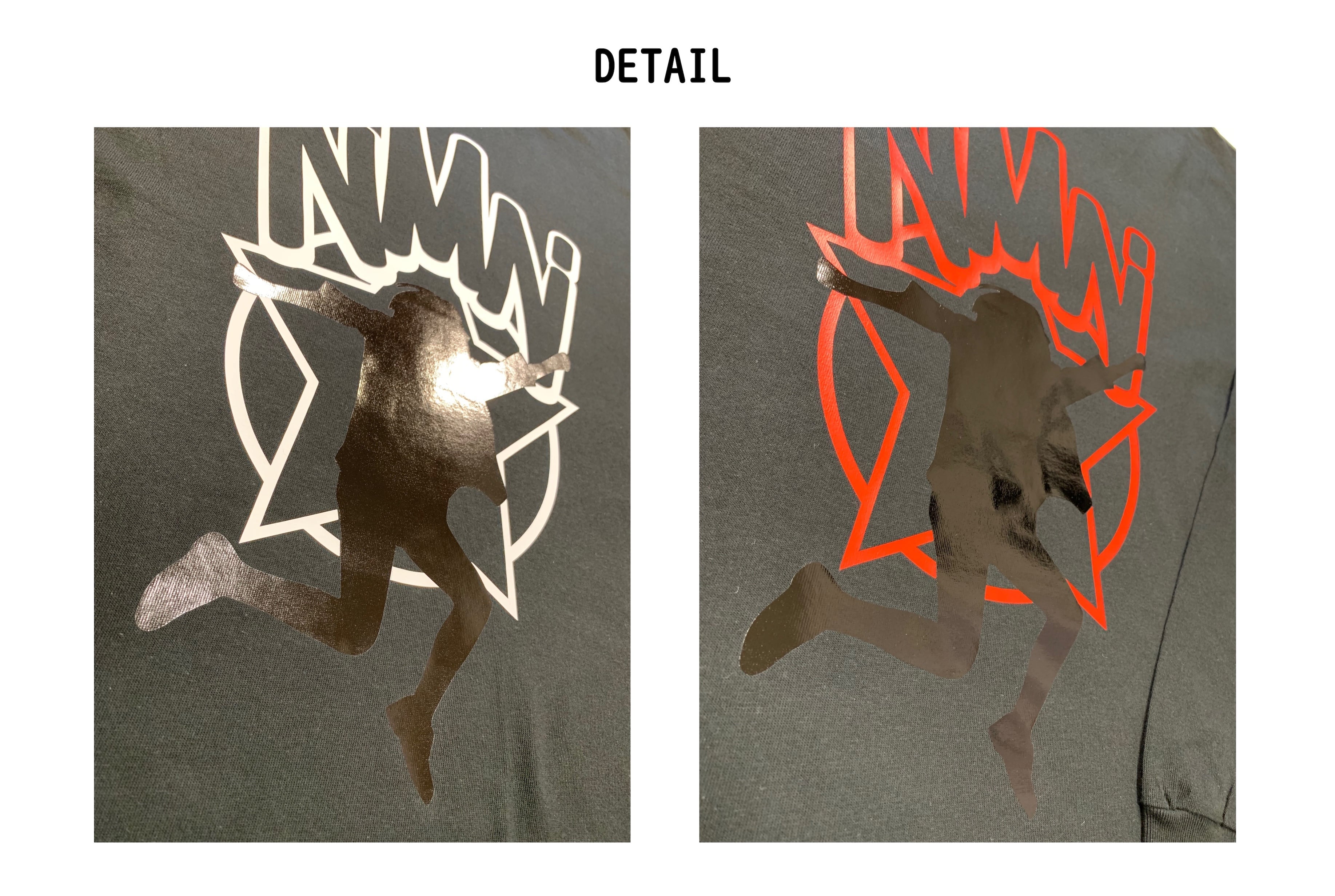 シルエット部分は、特殊な鏡面仕上げのブラックシートを使い、シャツの色と同色ながら
